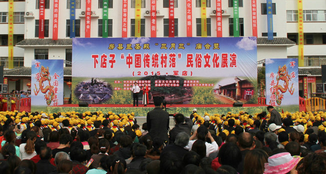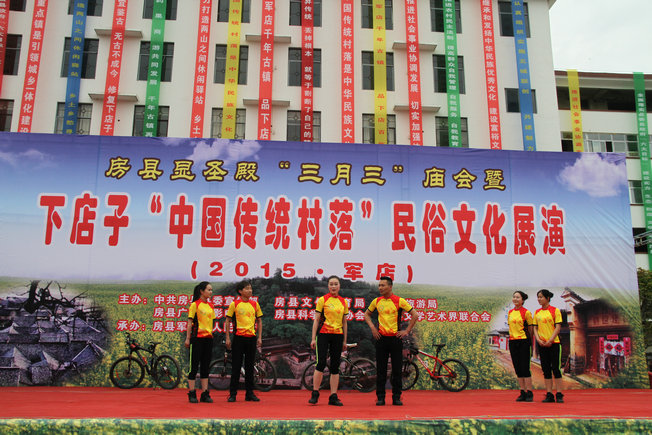4月21日,由房县县委宣传部、房县文体局、旅游局、广电局、科技协会、县文联主办,军店镇人民政府承办的房县显圣殿“三月三”庙会暨下店子“中国传统村落”民俗文化展演活动在军店镇文化广场举行,县长蔡贤忠,县委常委、宣传部长徐锦凤,县人大副主任丁宪章,县政协副主席王学能出席活动。 今年的庙会以“中国传统村落”为主题,展示出房县悠久的历史文化底蕴。演出在广场舞《关雎》中拉开帷幕,节目对唱《雎水情歌》、《关雎一双鞋》,唱出了诗经民歌的原生态之美,充分展示了房县诗经文化的源远流长。情景剧《骑行房陵》展示出房县在提倡环保低碳生活,打造绿色家园的努力。演唱《房县南山姑娘古怪多》、三句半《计生变化大》等民间文艺团体节目,不仅表现出古镇丰富的民俗,也展现了老百姓眼下安居乐业的幸福生活。 借此活动契机,房县文体局积极组织各相关部门在军店广场开展各类文化服务活动。全县各类省市级非遗传承人现场表演《房陵烙画》、《谭氏木雕》等非遗技艺,文化市场综合执法大队、博物馆积极开展文化市场法律法规及博物馆条例的宣传,图书馆利用流动图书车免费向当地群众发放致富书籍,现场讲解《湖北省全民阅读促进办法》,吸引了数千群众围观。(刘欢)